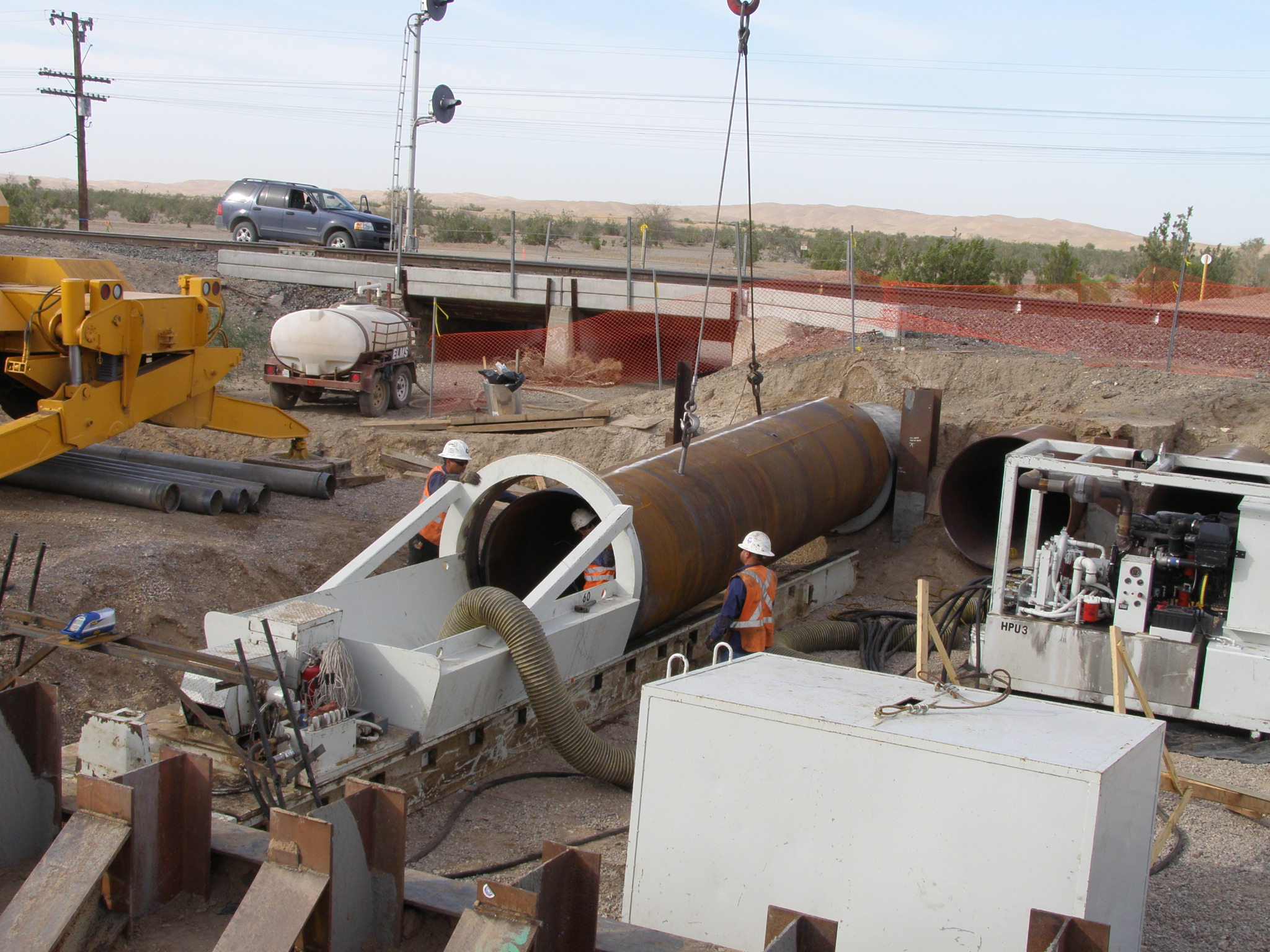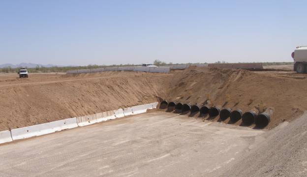 May 2010 New 60-inch culverts are installed under the Union Pacific mainline north of Glamis as part of the construction of the rail spur being built to bring trash by rail to the Mesquite Regional Landfill.