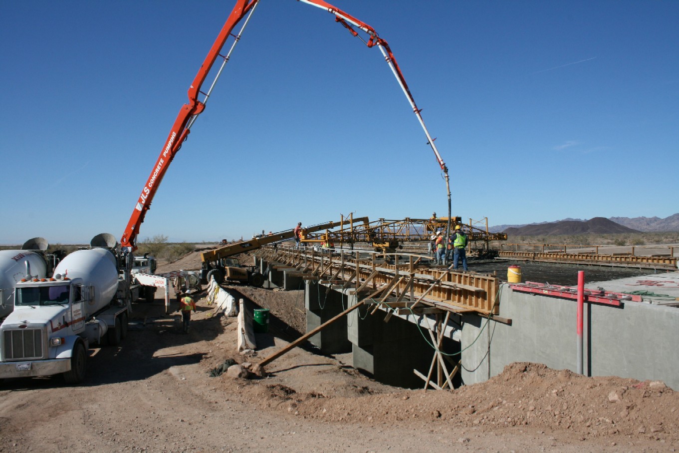 January 2011 Cement is poured on the span of the railroad bridge being constructed over the stormwater drain at the Mesquite Regional Landfill.