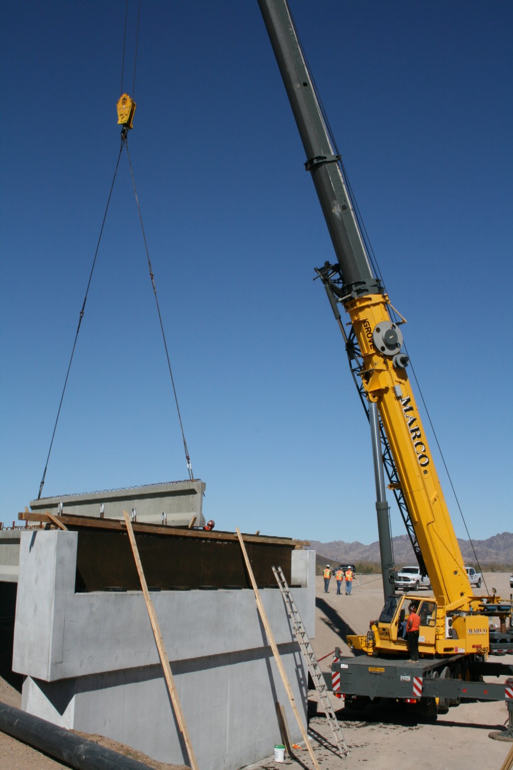 November 2010 A crane lifts massive girders into place for the railroad bridge being constructed over the stormwater channel at the Mesquite Regional Landfill.