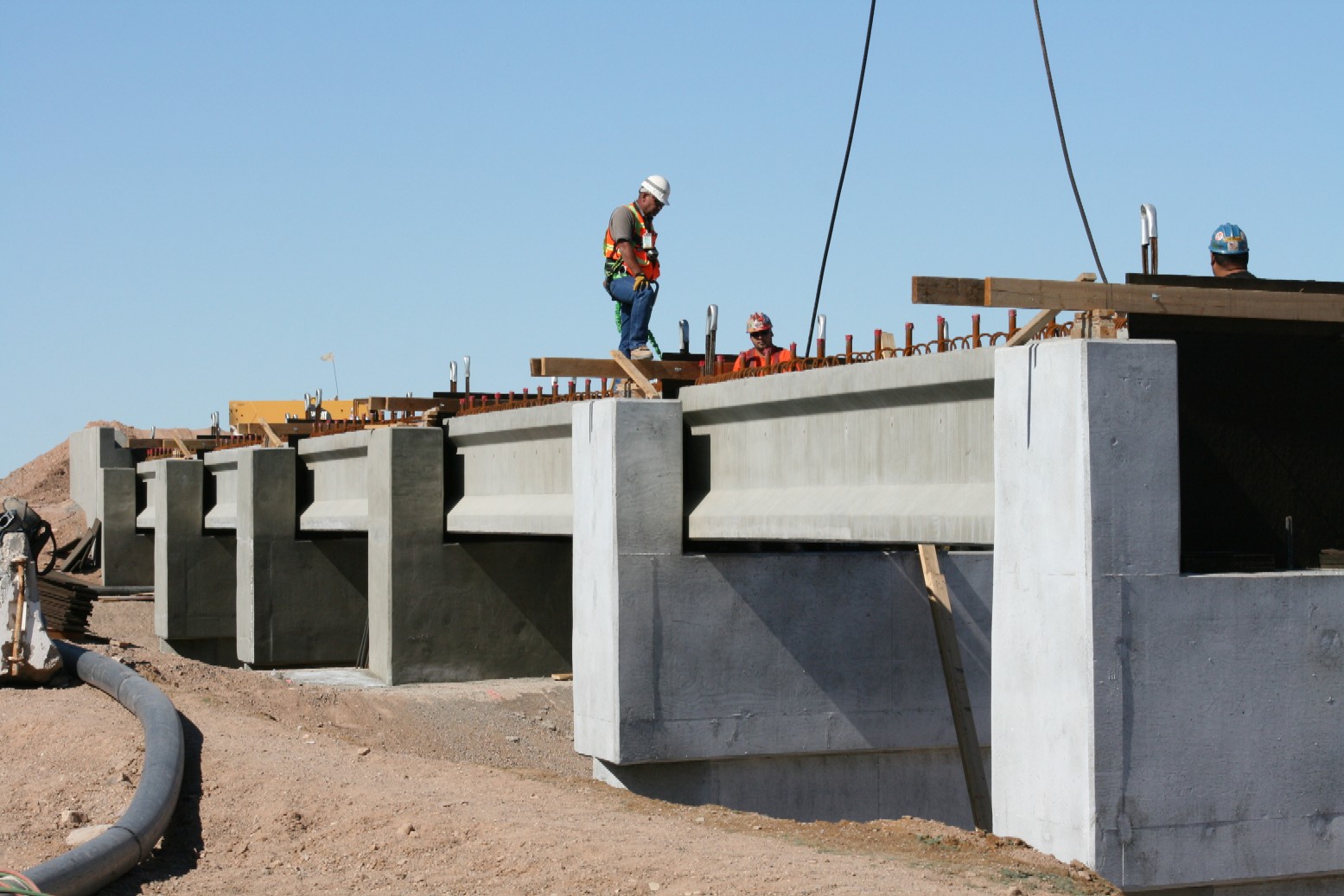November 2010 Crews secure girders in place for the railroad bridge being built to span the stormwater drainage system at the Mesquite Regional Landfill.