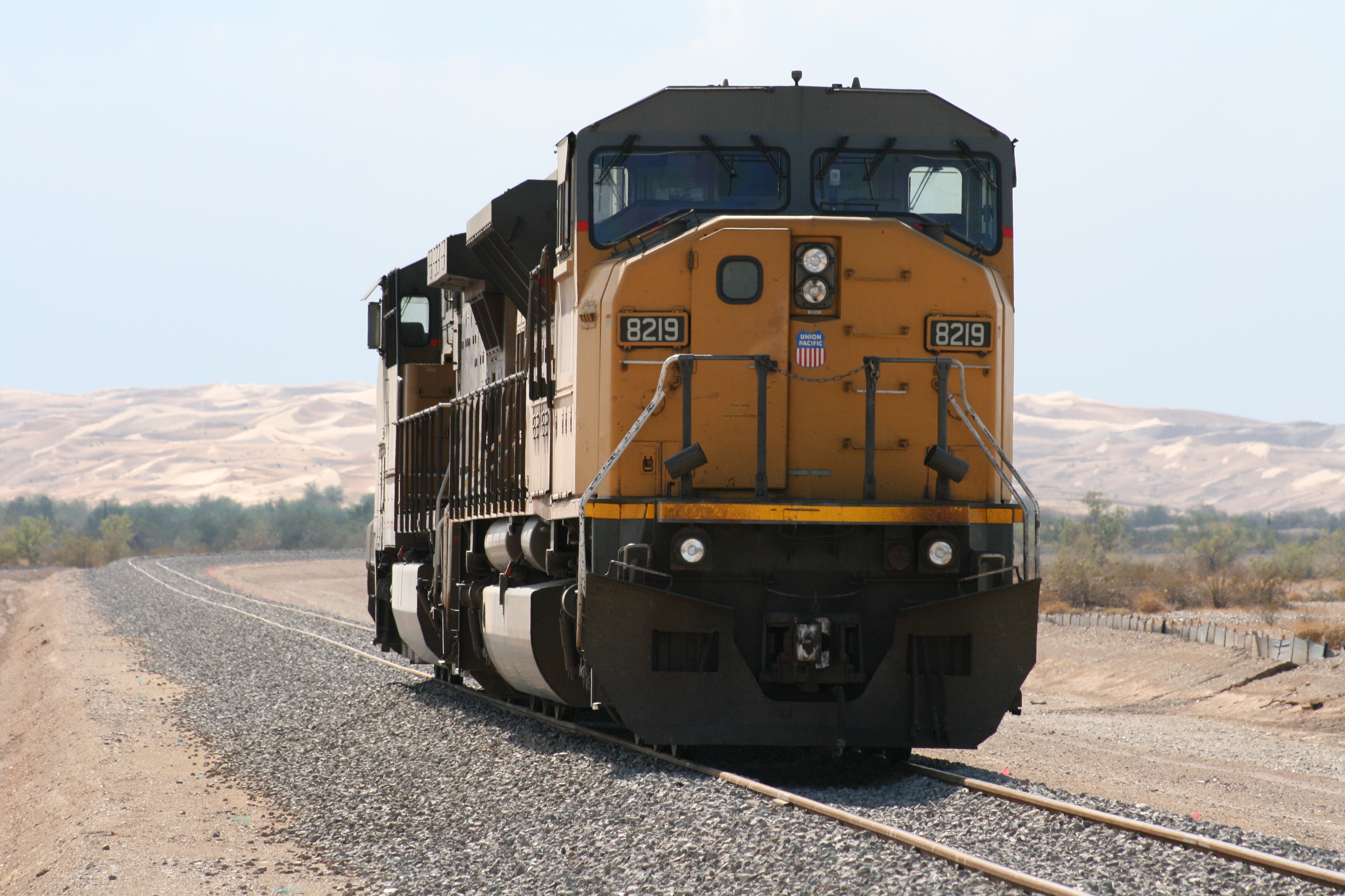 October 2010 The first Union Pacific Railroad locomotive used to test the Mesquite Regional Landfill rail spur rolls east along the track.
